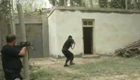 【解说】防恐队员一边向歹徒喊话分散其注意力,一边趁歹徒不备一拥而上将其制服,人质被成功解救。15分钟后,旅游秩序恢复正常。据南京中山陵园管理局安全保卫处副处长陈雨介绍,此次防恐演练旨助力青奥安保,维护南京中山陵这一个“窗口”形象。