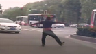 实拍奇葩醉汉当街拦车大跳"骑马舞"