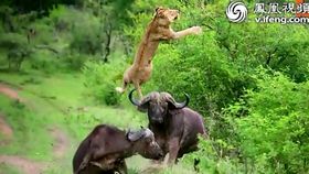 彪悍野牛狮口救同伴将狮子挑飞半空