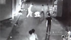 实拍五男子深夜为十元钱持刀砍杀小伙