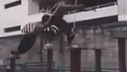 实拍高难度舞狮训练 踩桩飞奔如武侠电影