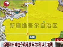 据新疆地震局台网初步测定,2月20日21时52分、21时59分、22时18分、22时20分、21日00时01分(北京时间),在新疆和田县先后发生4.5……