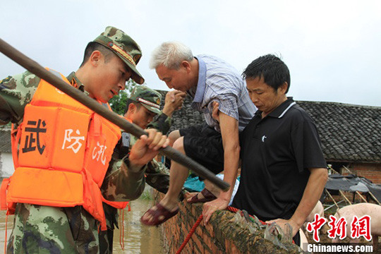 武警官兵正在转移被困群众。王恒想 摄