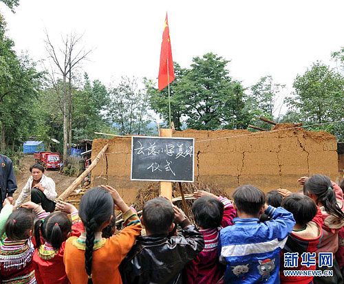 彝良地震灾区学生在爱心帐篷复课