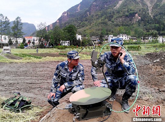 图为在成为孤岛的宝盛乡,为紧急开通空中生命通道提供通信保障。易开红 摄