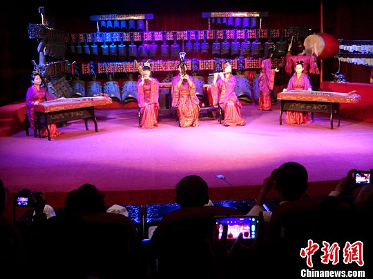 世界华文媒体高层团参观湖北省博物馆。图为欣赏编钟演奏。艾启平 摄