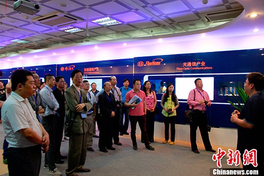 图为华文媒体高层参观武汉烽火科技。艾启平 摄