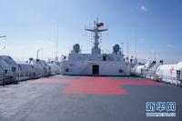 搜救直升机营救“落水人员”。孙利 摄 图片来源:新华网