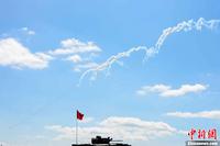 8月12日12时(北京时间下午2时),“和平使命-2013”中俄联合反恐军事演习,在俄罗斯切巴尔库尔合同训练场进行了实兵实弹协同训练。图为中方武装直升机发射干扰弹隐蔽接敌。中新社发 谭长俊 摄