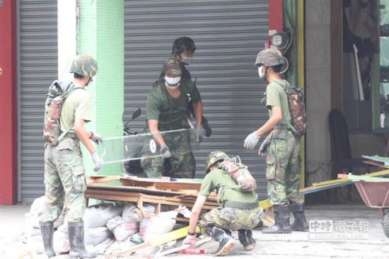 台军弟兄协助住户们清理现场。图:“中时电子报”