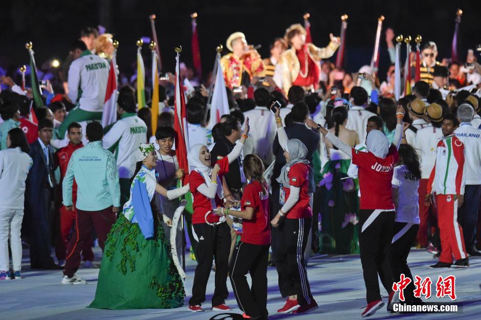 4日晚,亚奥理事会主席艾哈迈德·法赫德·萨巴赫亲王宣布第十七届亚运会闭幕,燃烧了16天的亚运圣火在韩国仁川的主体育场熄灭。韩国总理郑烘原和朝鲜高级代表团成员出席了当晚的开幕式。